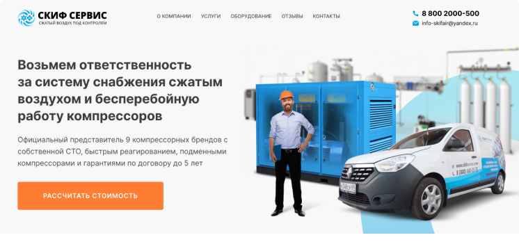 Наш клиент, «Скиф Сервис», — давал решение всех этих болей. Они приезжали на объект, выясняли, какой именно компрессор будет лучше работать в данных условиях — привозили его, устанавливали, монтировали. А потом еще сами напоминали об очередном ТО и привозили необходимые детали. И вот эта простая штука — «вам не надо ни о чем думать и беспокоиться, мы всё сделаем» — стала точкой отстройки.