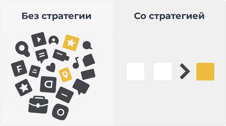Решения принимаются ситуативно: запустили таргет, потом SEO, потом попробовали выставку. Меняются подрядчики, бюджеты, каналы, но системного результата нет. Потому что нет фундамента.