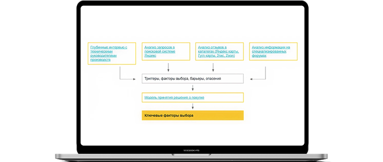 Так мы узнали всю информацию о целевой аудитории: от пути потребителя к покупке шаг за шагом, до ключевых факторов выбора и основных страхов и барьеров к покупке. А также поняли, как выглядит рынок на текущий момент, где заказчик сильнее, где — объективно слабее. И что нужно докрутить в продукте и в рекламной подаче, чтобы отстроиться от конкурентов и попасть в ожидания клиента.