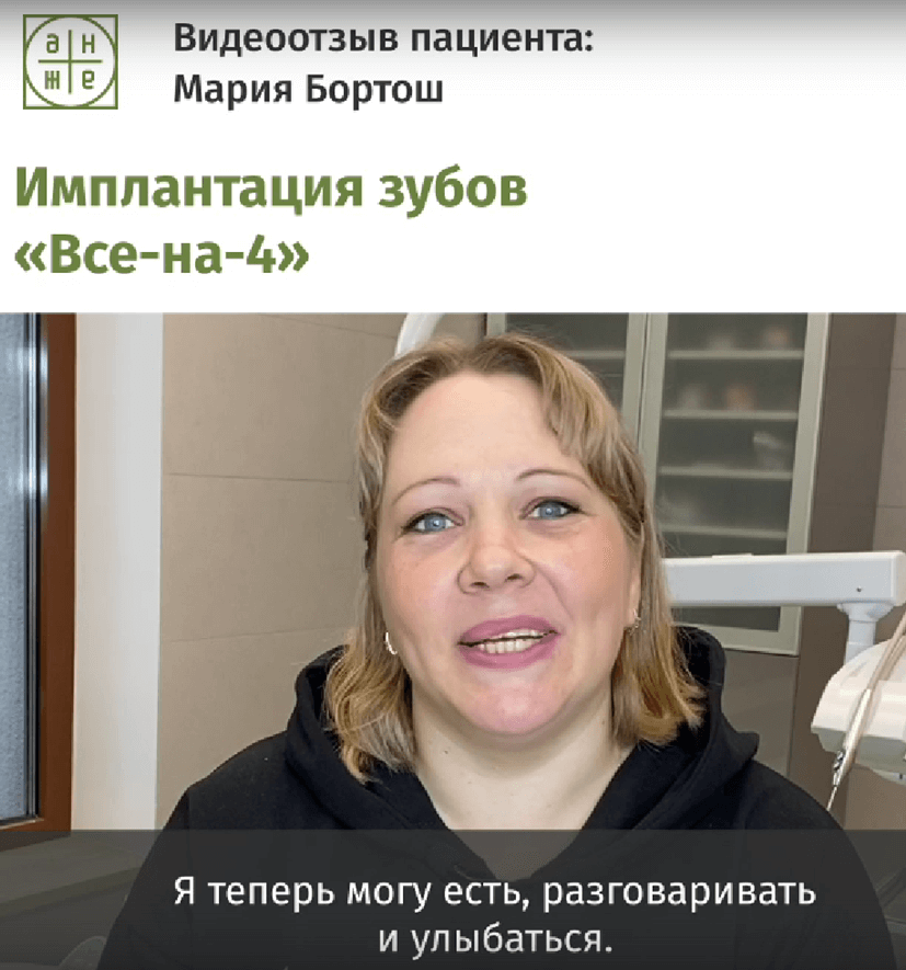 Видео-отзыв о том, как лечение помогло пациентке восстановить здоровье зубов, показывает «работу» продукта — с комфортом есть любимую пищу