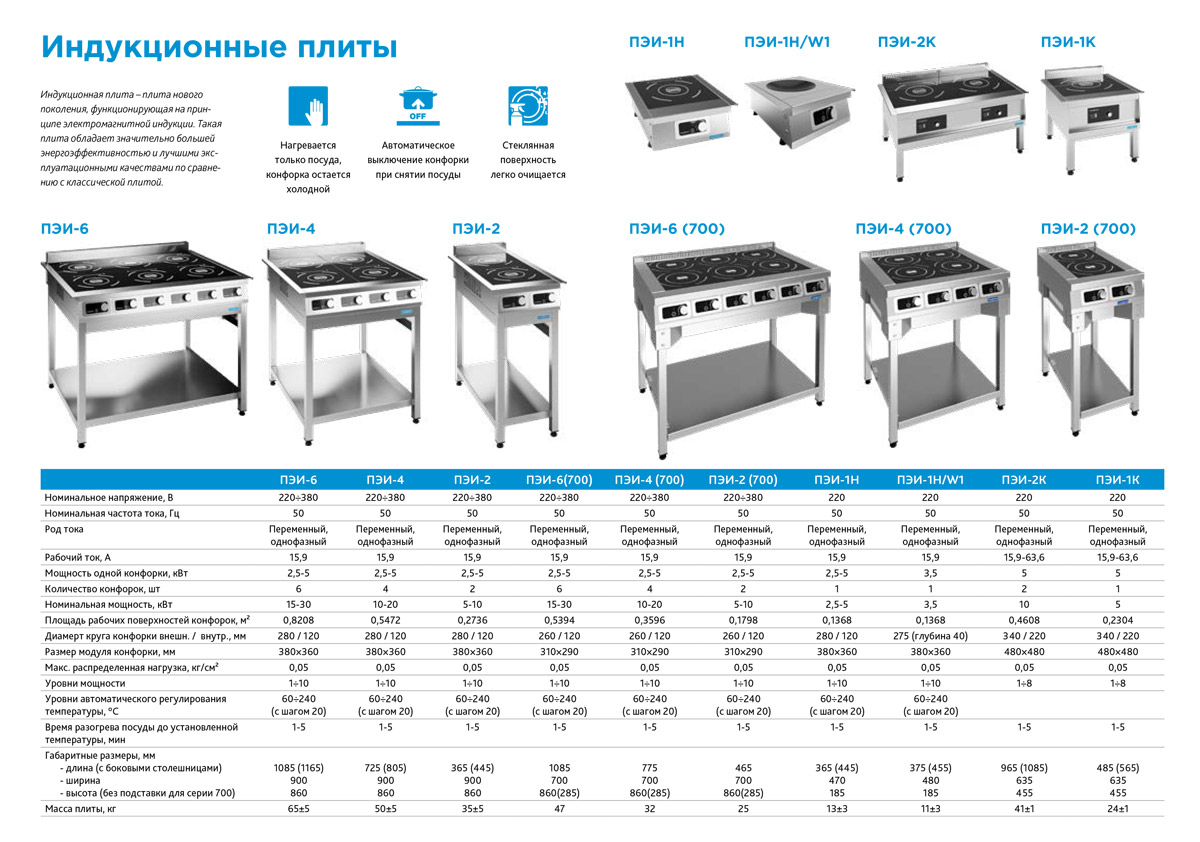 - мгновенно нагреваются и автоматически отключаются, как только с конфорки снимают посуду. Это позволяет экономить на теплопотерях.