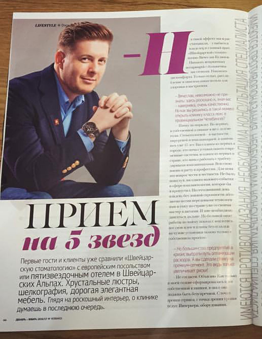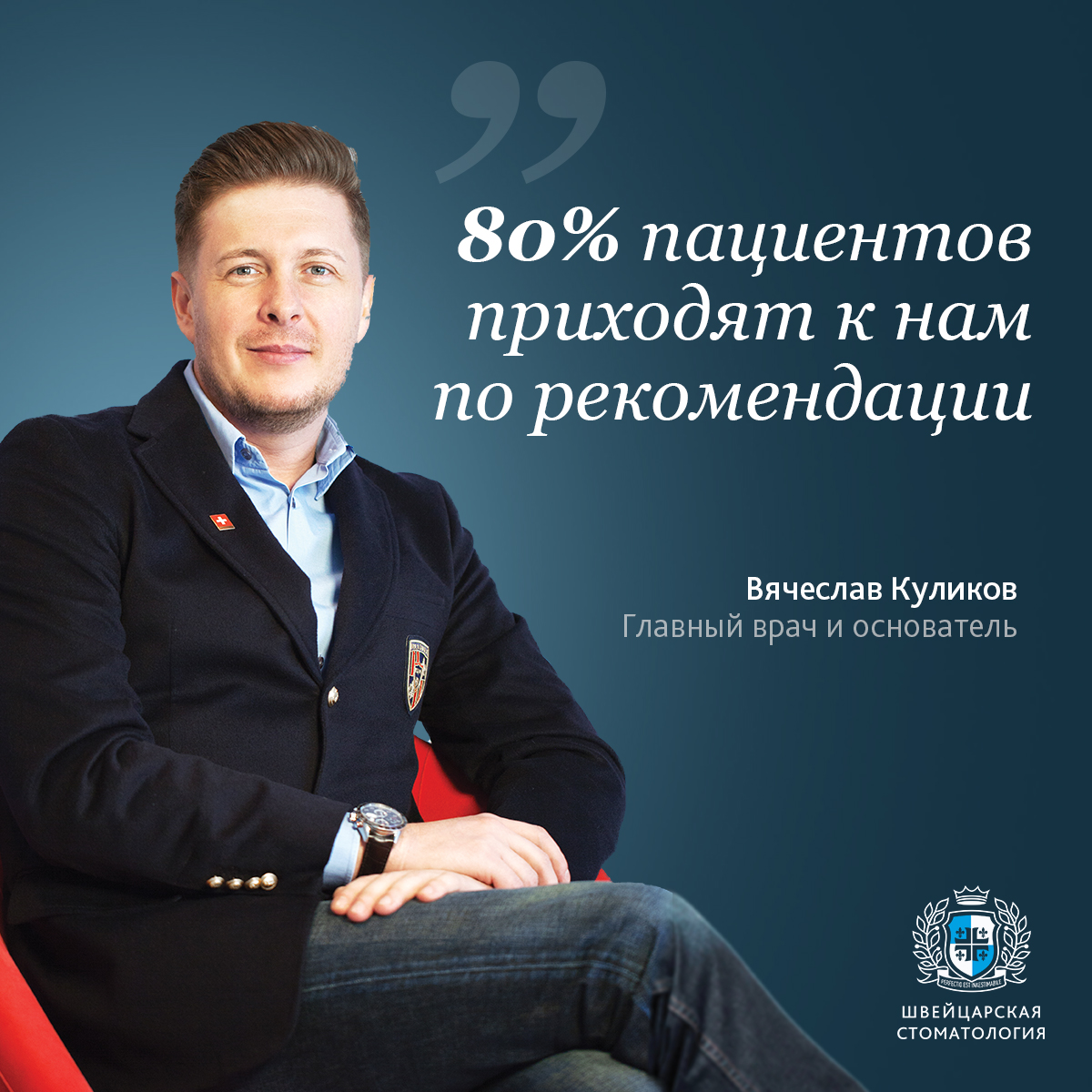 Мы постоянно пиарили Вячеслава, используя каждый подходящий случай. Через него создавали образ и отношение к «Швейцарской стоматологии».