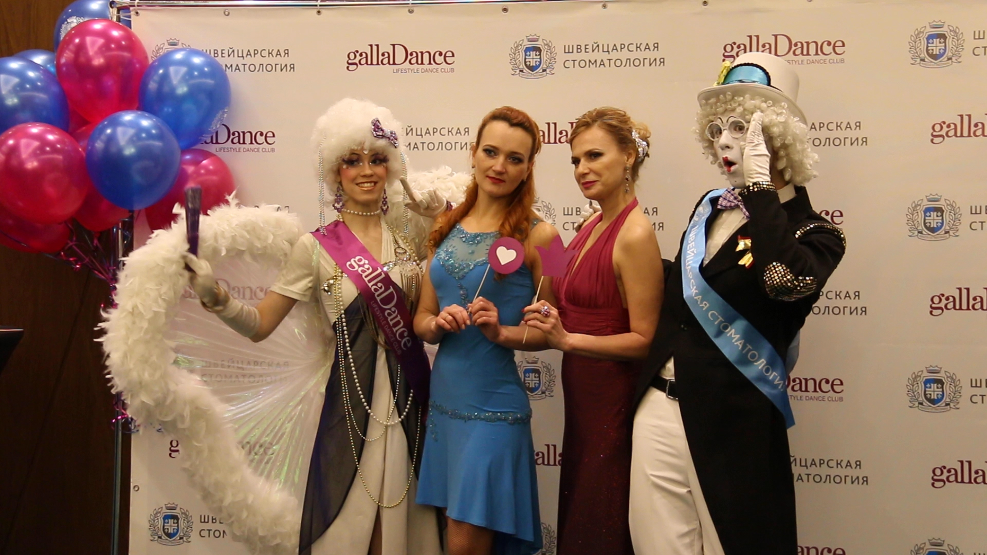 На конкурсах бальных танцев всегда присутствует публика, которая нам нужна. Мы поставили брендированную стену, пригласили мимов и фотографа. Фотографии печатали сразу на месте и оформляли брендированными рамками «Швейцарской стоматологии».