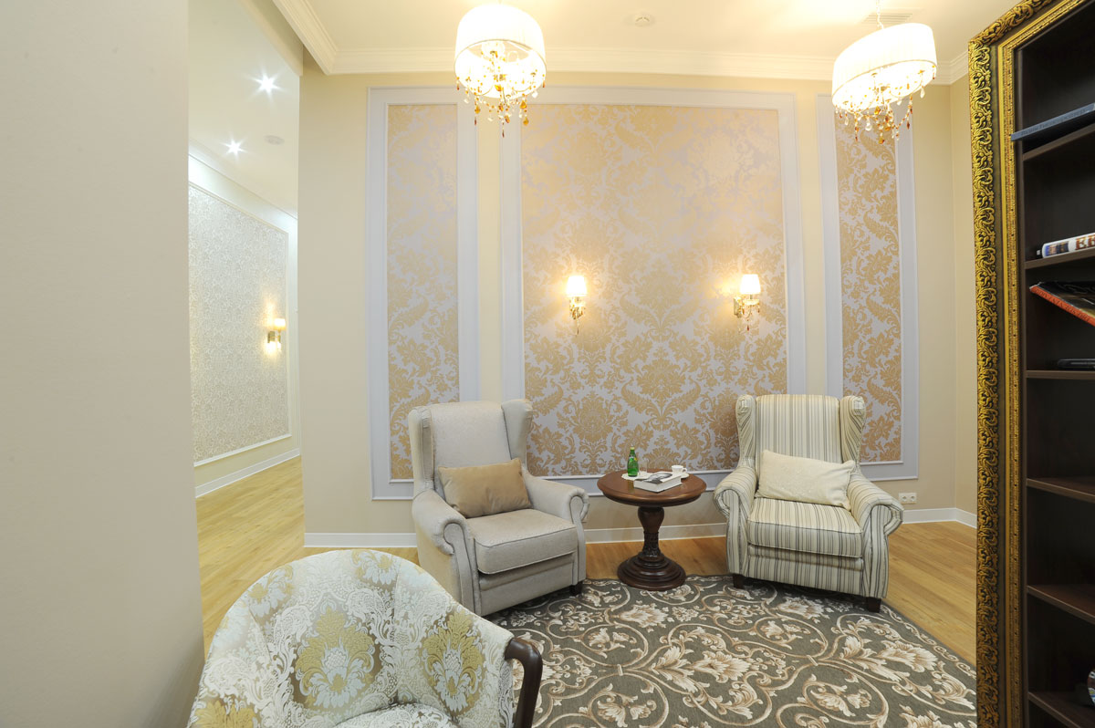 Основная идея — создать в клинике домашнюю атмосферу, привычную для людей премиум-сегмента. Мы хотели сделать так, чтобы клиенты не чувствовали, что находятся в больнице, а ощущали себя спокойно и свободно, как будто пришли в гости к другу. Идеально подошел интерьер в стиле бизнес-лаунжей известных аэропортов.