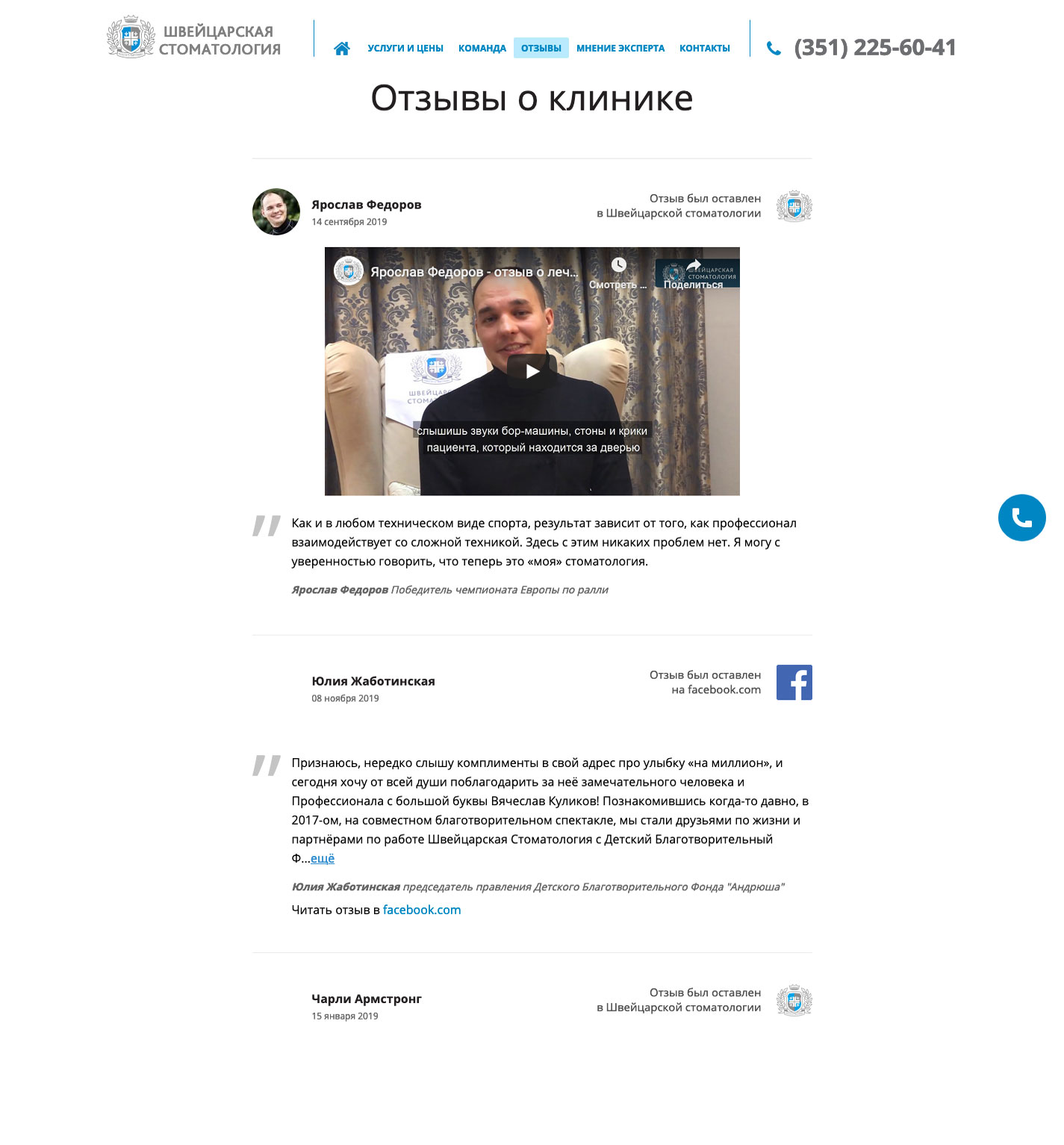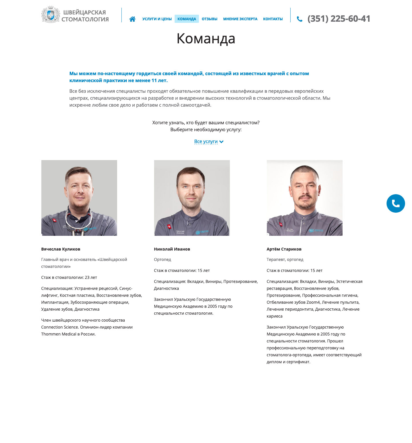 Для продвижения в интернете мы разработали сайт. Он помогал людям больше узнать о «Швейцарской стоматологии» и технологиях, которые используют в лечении. Люди заочно знакомились с командой, выясняли цены, оценивали уровень сервиса.