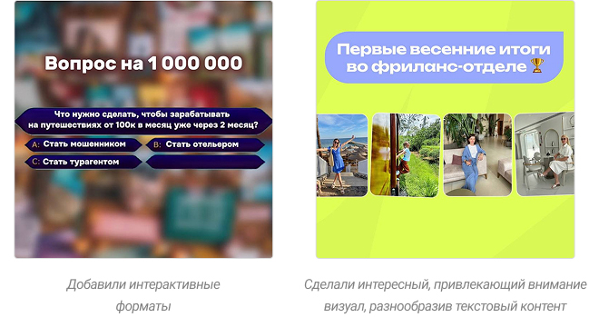 - интегрировали новые форматы — конкурсы, коллаборации, мини-курсы;